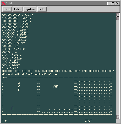 Eli the Bearded presents vi, including Conway's Game of Life for vi! [SCREEN SHOT, 7K GIF] Also there are examples of "Hello, world" in vi, the Towers of Hanoi puzzle solver vi macros, and a couple different sets of HTML macros for vi. This site leans heavily toward VIM, but has a lot of "true" vi content as well.Java Programming with Vim
